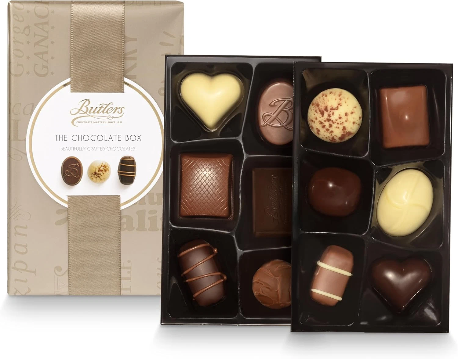 Butlers The Chocolate Box offers an indulgent assortment of handcrafted Irish chocolates, elegantly presented in a 160g gift box. Inside you’ll find a tempting mix of milk, dark and white chocolates filled with smooth praline, rich caramel, silky truffle and fruit-infused ganaches—perfect for gifting or sharing.
